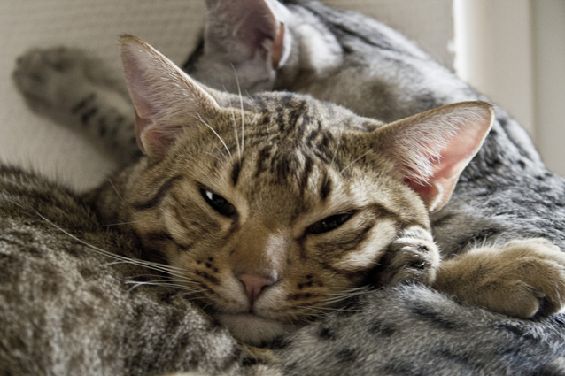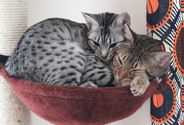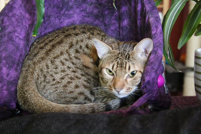 Leikkien jälkeen alkaa täpläkissoilla levoton makoilu. Häntää piiskataan lattiaan vaikka väsyttää niin ettei jaksa enään muuten liikkua. Sitten otetaan muutama askel ja kaadutaan uudestaan. Luulen että tämä on tuttua ainakin kaikille ocien omistajille, sen verran samalla tavalla käyttäytyy Juno sekä Ulpu.